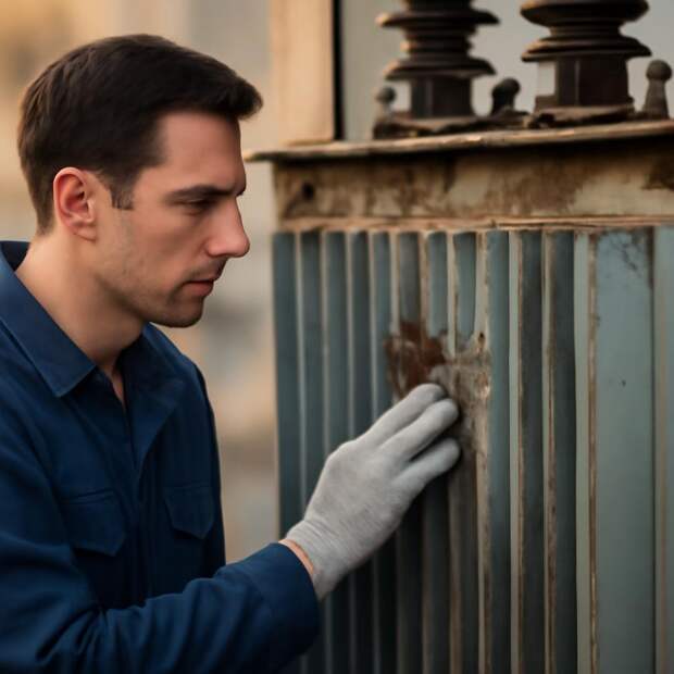 • Визуальный осмотр: ищите потеки масла (для масляных трансформаторов), обгорелые контакты или деформацию.